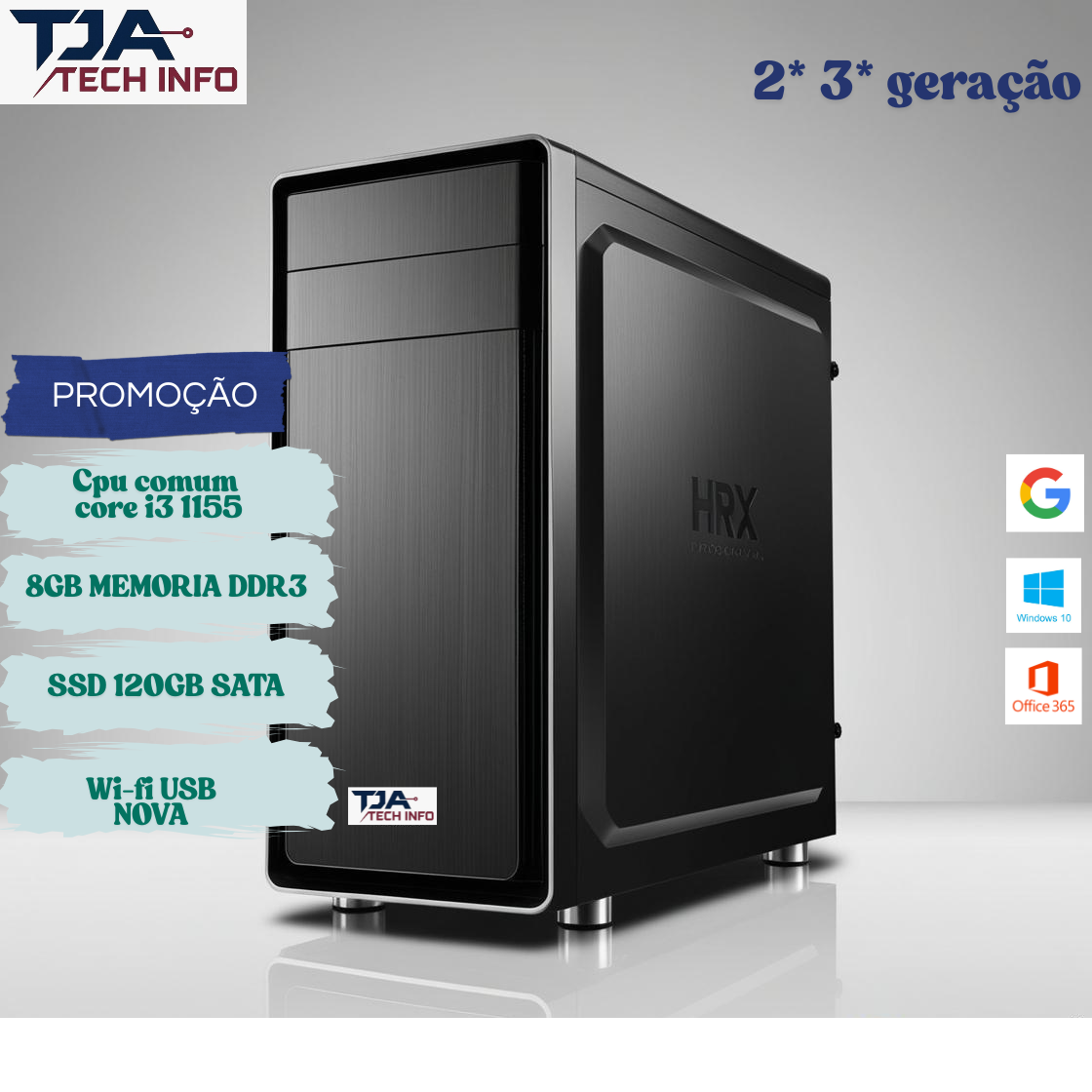 🖥️ TJA TECH INFO – COMPUTADOR INTEL CORE I3 2ª/3ª GERAÇÃO | 8GB DDR3 | SSD 120GB | WI-FI | WINDOWS 10 ATIVADO